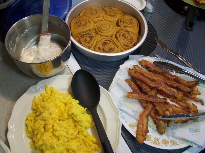 I made our traditional "Vanocka Braid" bread and then we had sausage, whipped cream fruit salad and hot chocolate (stirred with a candy cane!) for breakfast.
