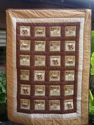 For the backing fabric, I used the same as the last border fabric and binding was a dark marbled brown.